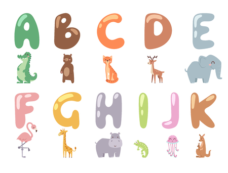 動物と子供のアルファベット ベクトル文字セットのイラスト素材 ベクタ Image