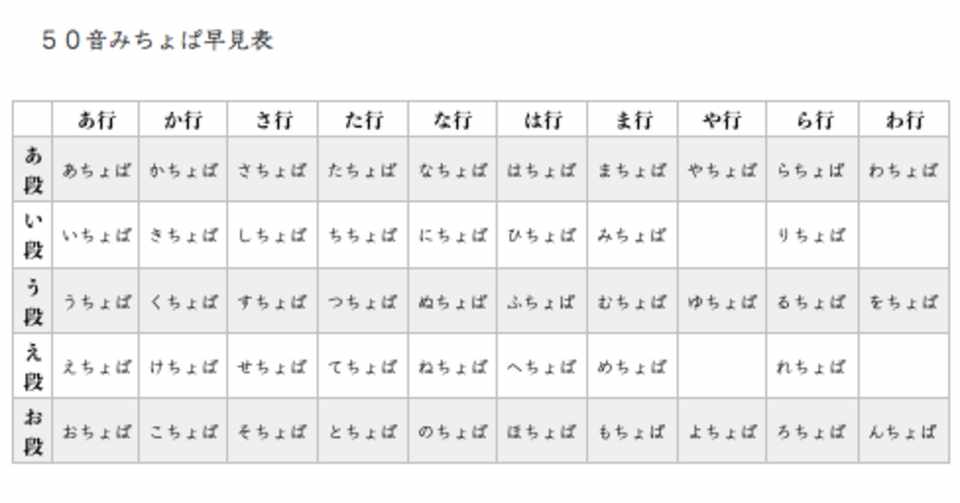 50音みちょぱ早見表 お昼の春菊 Note