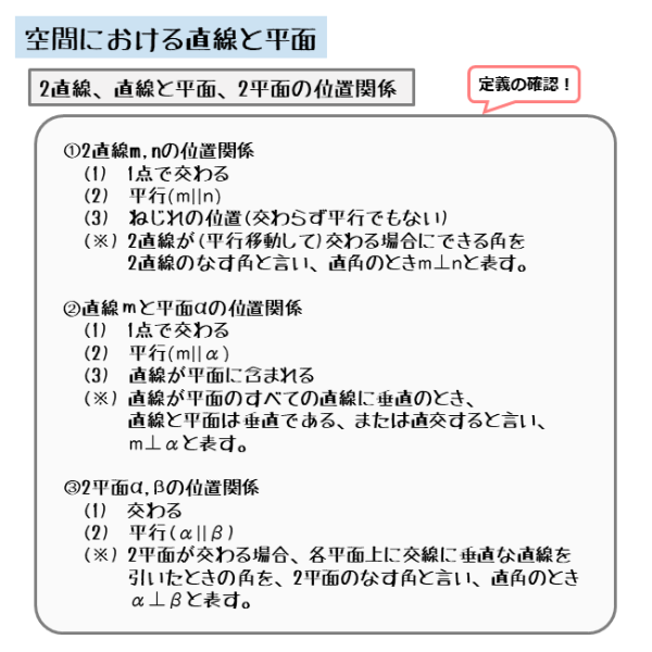 図形の性質 空間における直線と平面について 日々是鍛錬 ひびこれたんれん