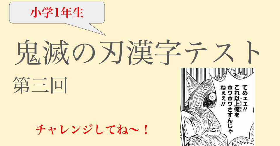 大好き 鬼滅の刃漢字テスト1年生 第三回 ふわちゃん Note