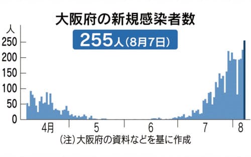 新型コロナ 大阪府 7日の感染者は255人 過去最多を更新 日本経済新聞